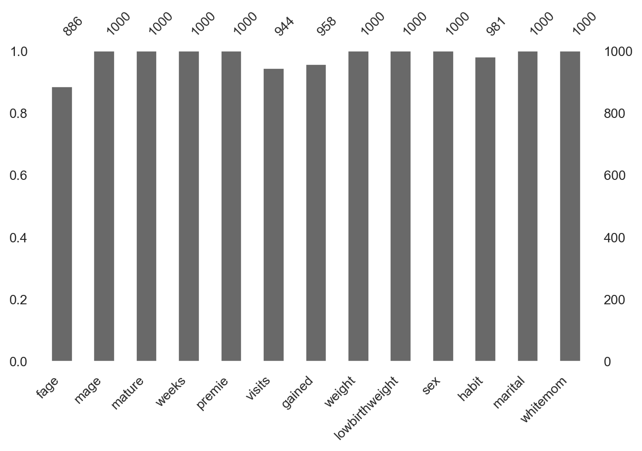 # Import all required librariesimport pandas as pdimport numpy as npimport seaborn as snsimport matplotlib.pyplot as pltimport scipy.stats as statsfrom scipy.stats import skewnormfrom scipy.stats import kurtosis, normfrom scipy.stats import gammaimport missingno as msnoimport randomimport statsmodels.api as sm# Increase font size of all Seaborn plot elementssns.set(font_scale =1.25)# Load in UK Smoking Databirths14 = pd.read_csv("data/births14.csv")# Set seedrandom.seed(123)