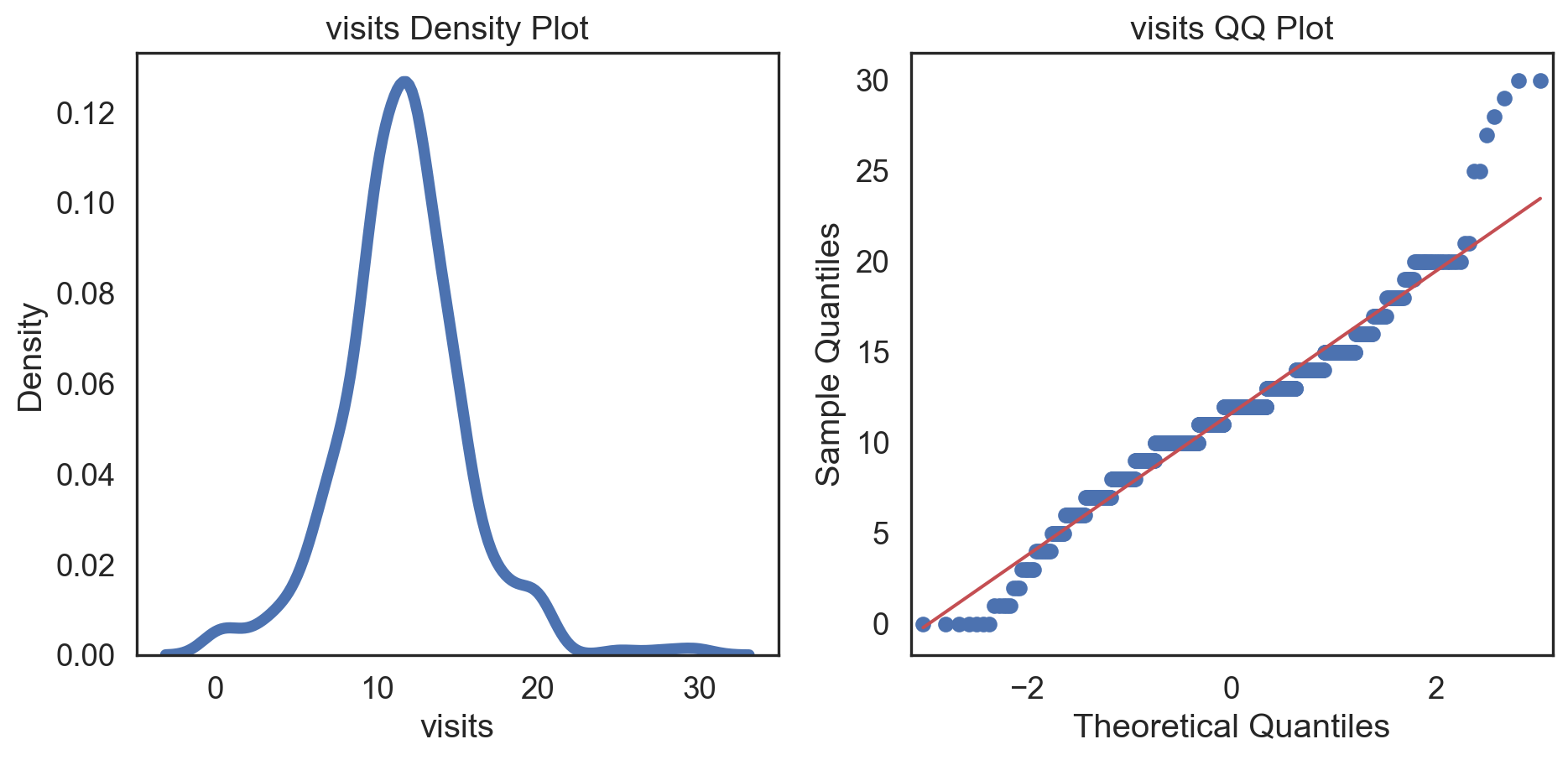 visits q25 = 9.0 q75 = 14.0 IQR = 5.0